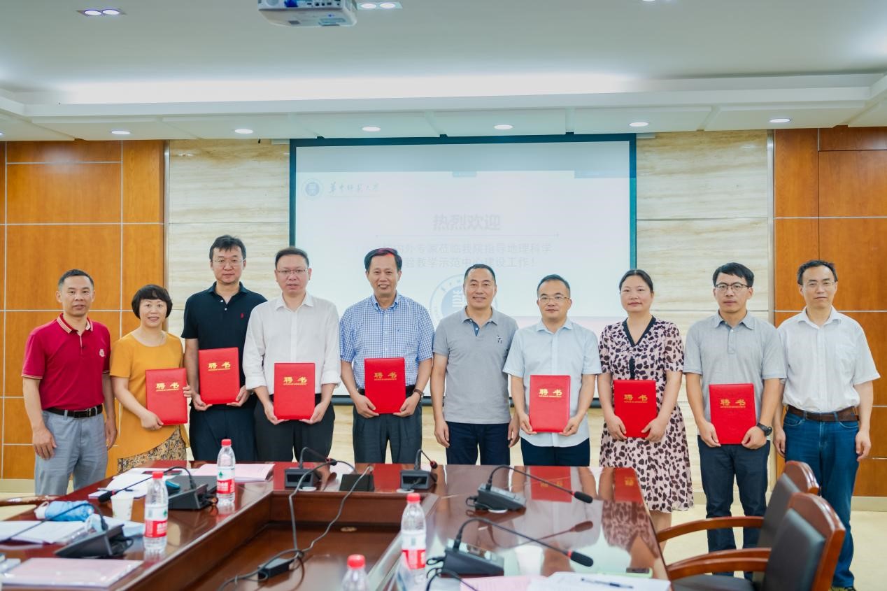 会议分两个阶段。第一阶段由中心主任谢双玉教授主持。谢双玉教授介绍了与会嘉宾后,中心依托的城市与环境科学学院院长敖荣军教授致欢迎辞并讲话,他表示学院十分重视中心和实验室的建设,要尽量发挥实验教学在人才培养中的重要作用,对与会专家和领导的莅临指导表示衷心感谢。接着,实验室与设备管理处副处长梅伏生宣读《关于聘任张剑荣教授等112名专家为我校17个实验教学示范中心教学指导委员会委员的决定》,决定聘任刘耀林等七位专家为第二届湖北省地理科学实验教学示范中心教学指导委员会委员,委员包括武汉大学刘耀林教授、武汉大学李志刚教授、中国地质大学王伦澈教授、中国科学院张亮研究员、华中农业大学李朝霞教授、武汉市规划研究院肖志中总规划师、华中师范大学谢双玉教授,并由敖荣军院长为新一届委员颁发聘书。